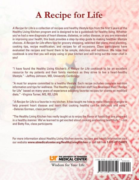 A Recipe for Life is a collection of recipes and healthy lifestyle tips from the first 5 years of the Healthy Living Kitchen program and is designed to be a guidebook for healthy living. Whether you have had a diagnosis of heart disease, diabetes, or celiac disease, or you are interested in improving your health, this book provides a step-by-step guide to making healthier lifestyle choices. A Recipe for Life offers tips for grocery shopping, selected diet plans, meal planning, cooking tips, recipe modification, and recipes for all occasions. Class participants have evaluated the recipes and found them to be simple, delicious and nutritious. We hope this cookbook is one that you will enjoy using in your kitchen and will bring out the inner chef in you!