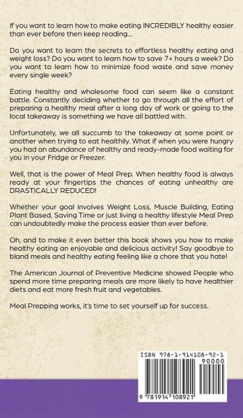 If you want to learn how to make eating INCREDIBLY healthy easier than ever before then keep reading... Do you want to learn the secrets to effortless healthy eating and weight loss? Do you want to learn how to save 7+ hours a week? Do you want to learn how to minimise food waste and save money every single week? Eating healthy and wholesome food can seem like a constant battle. Constantly deciding whether to go through all the effort of preparing a healthy meal after a long day of work or going to the local takeaway is something we have all battled with. Unfortunately, we all succumb to the takeaway at some point or another when trying to eat healthy. What if when you was hungry you had an abundance of healthy and ready made food waiting for you in your Fridge or Freezer. Well that is the power of Meal Prep. When healthy food is always ready at your fingertips the chances of eating unhealthy are DRASTICALLY REDUCED! Whether your goal involves Weight Loss, Muscle Building, Eating Plant Based, Saving Time or just living a healthy lifestyle Meal Prep can undoubtedly make the process easier than ever before. Oh, and to make it even better this book shows you how to make healthy eating an enjoyable and delicious activity! Say goodbye to bland meals and healthy eating feeling like a chore that you hate! The American Journal of Preventive Medicine showed People who spend more time preparing meals are more likely to have healthier diets and eat more fresh fruit and vegetables. Meal Prepping works, it’s time to set yourself up for success. Here is just a slither of what you will discover inside.. • The 6 week step by step guide to Meal Prep success • The ESSENTIAL storage tips to stop yourself from sabotaging your diet! • How more people are transforming their diets with Meal Prep than ever before • Exact shopping lists for every week of Meal Prep • The top 10 reasons people continuously fail at eating healthy (it’s not what you think) • How Meal Prep can help you save 7+ hours a week • Why Athletes use meal prep to help them reach their goals • The secrets to sticking to healthy eating FOREVER • How to hack your willpower and never have to solely rely on it again • The best way to store salads The Secret to sticking to Meal Prep long term • How to use meal prep with any dietary needs (Including Veganism!) • 5 Essential tips for Weight Loss on a Vegan diet • This 1 secret could increase your chances at reaching your weight loss goals MASSIVELY • 4 Essential fridge cleaning tips • A simple but startling tip to never run out of food And, much much more! So, even if you’ve never made more than 1 portion of a meal before, this book will outline exactly how you can make Meal Prepping a healthy habit that makes eating in the best possible way all but effortless. It’s time you had the meal prepping tool in your arsenal. So, if you’re ready to transform your eating habits and finally stick to a healthy lifestyle scroll up and click "Add to Cart."