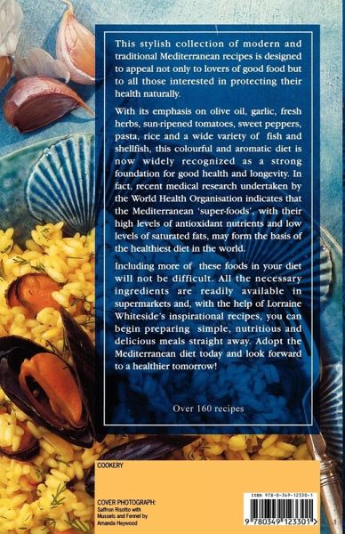 Few visitors to the Medtitterranean realize that the food they enjoy so much constitutes one of the healthiest diets in the world. HEALTHY MEDITERRANEAN COOKERY is a collection of 160 delicious recipes. With it's emphasis on olive oil, garlic, fresh herbs, sun-ripened tommatoes, sweet peppers, pasta, rice and a wide variety of fish and shellfish, this colourful and aromatic diet is now widely recognized as a strong foundation for good health and longevity. In fact, recent medical research undertaken by the World Health Organisation indicates that the Mediterranean 'super-foods', with their high levels of antioxidant nutrients and low levels of saturated fats, may form the basis of the healthiest diet in the world. Including more of these foods in your diet will not be difficult. All the necessary ingredients are readily available in supermarkets and, with the help of Lorraine Whiteside's inspirational recipes, you can begin preparing simple, nutritious and delicious meals straight away. Adopt the Mediterranean diet today and look forward to a healthier tomorrow!