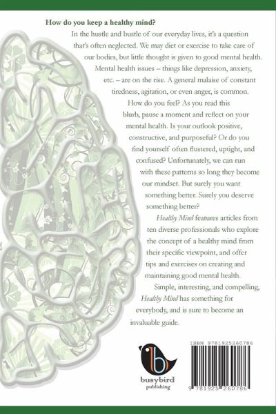 How do you keep a healthy mind? In the hustle and bustle of our everyday lives, it's a question that's often neglected. We may diet or exercise to take care of our bodies, but little thought is given to good mental health. Mental health issues - things like depression, anxiety, etc. - are on the rise. A general malaise of constant tiredness, agitation, or even anger, is common. How do you feel? As you read this blurb, pause a moment and reflect on your mental health. Is your outlook positive, constructive, and purposeful? Or do you find yourself often flustered, uptight, and confused? Unfortunately, we can run with these patterns so long they become our mindset. But surely you want something better. Surely you deserve something better? Healthy Mind features articles from ten diverse professionals who explore the concept of a healthy mind from their specific viewpoint, and offer tips and exercises on creating and maintaining good mental health. Simple, interesting, and compelling, Healthy Mind has something for everybody, and is sure to become an invaluable guide.