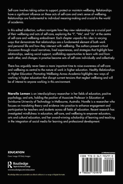 In this edited collection, authors navigate how they view relationships as a crucial part of their wellbeing and acts of self-care, exploring the "I", "We" and "Us" at the centre of self-care and wellbeing embodiment.