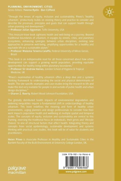 The globally distributed health impacts of environmental degradation and widening inequalities require a fundamental shift in understandings of healthy urbanism. This book redefines the meaning and form of healthy urban environments, urging planners and design professionals to consider how their work impacts population health and wellbeing at multiple spatial and temporal scales. The concepts of equity, inclusion and sustainability are central to this framing, reversing the traditional focus on individuals, their genes and 'lifestyle choices' to one of structural factors that affect health. Integrating theory and concepts from social epidemiology, sustainable development and systems thinking with practical case studies, this book will be of value for students and practitioners.