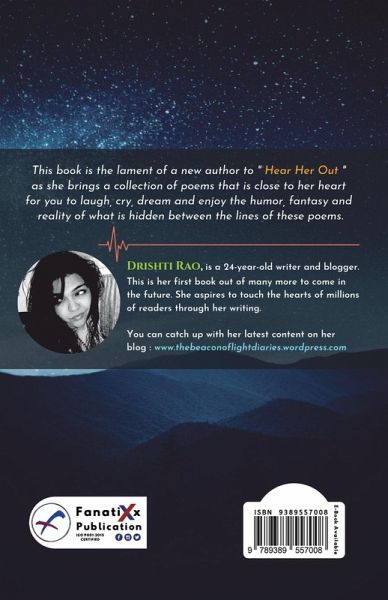 This book is the lament of a new author to Hear Her Out as she brings a collection of poems that is close to her heart for you to laugh, cry, dream and enjoy the humor, fantasy and reality of what is hidden between the lines of these poems.