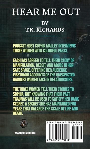 Podcast host Sophia Malley interviews three women with colorful pasts. Each has agreed to tell their story of manipulation, deceit, and abuse in her safe space, offering her audience firsthand accounts of the unexpected dangers women face in relationships. Kylah revisits her first few years of college where she stumbled to survive without help from her parents. Navigating in a world with blinders on, she quickly finds out that people are not who they portray themselves to be, and that the stories her grandmother once told her weren't fairytales after all. They were more of a warning for people like Clay Anthony. The man that removes her rose-colored glasses to show her darkness exists in the world. Deja recalls a time in her youth where her daddy issues played an intricate part in her making the wrong decisions when it came to love. The tricky four letter word that cast a spell on her when she graduated college. As a new employee in a management training program and rookie athlete on the local semi-pro team, Deja makes time for a personal life and meets Lamar Wilkins. The man who makes her question the energy she attracts, and teaches her that when a person shows you who they are the first time, you should believe them. Mona Lisa shares two accounts of harmful exposure at the hands of men. One she refuses to name, and a stranger by the name of Dwight, who molded her current beliefs that there is no such thing as love in this world full of liars and lust. And that not all monsters look the way they do in the movies. The three women tell their stories to Sophia, not knowing that their past traumas will be used to satisfy her dark secret. A secret she has maintained for years that balance the scale of life and death.