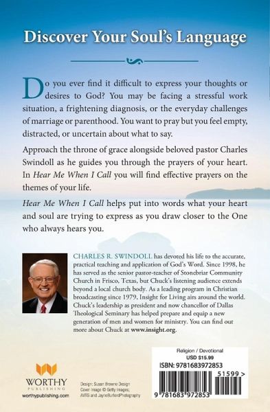 Do you ever find it difficult to express your thoughts or desires to God? You may be facing a stressful work situation, a frightening diagnosis, or the everyday challenges of marriage or parenthood. You want to pray but you feel empty, distracted, or uncertain about what to say. Approach the throne of grace alongside beloved pastor Charles Swindoll as he guides you through the prayers of your heart. In Hear Me When I Call you will find effective prayers on the themes of your life. Hear Me When I Call helps put into words what your heart and soul are trying to express as you draw closer to the One who always hears you.
