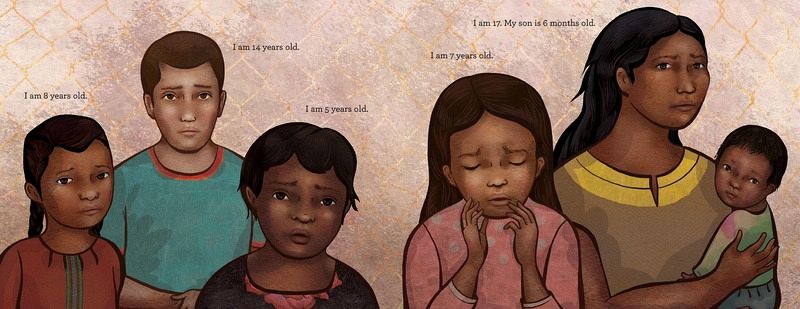 The Testimony of Children A moving picture book for older children and families that introduces a difficult topic, amplifying the voices and experiences of immigrant children detained at the border between Mexico and the US. The children's actual words (from publicly available court documents) are assembled to tell one heartbreaking story, in both English and Spanish (back to back). Each spread is illustrated in striking full-color by a different Latinx artist. A portion of sales will be donated to human rights organizations that work with children on the border.