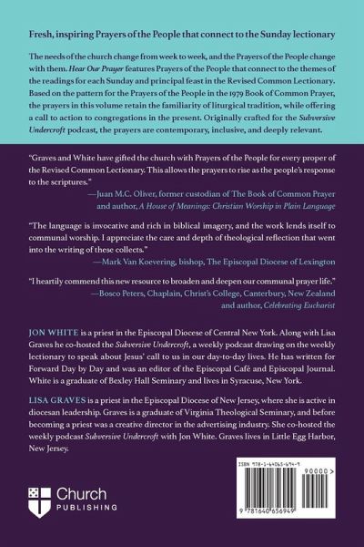 "A collection of fresh, inspiring Prayers of the People that connect to the Sunday lectionary. The needs of the church change from week to week, and the Prayers of the People should change with them. Hear Our Prayer features Prayers of the People that connect to the themes of the readings for each Sunday and principal feast in the Revised Common Lectionary. Originally crafted for the Subversive Undercroft podcast, hosted by Jon White and Lisa Graves, the prayers are contemporary, inclusive, and deeply relevant. Based on the pattern for the Prayers of the People in the 1979 Book of Common Prayer, the prayers in this volume retain the familiarity of liturgical tradition, while offering a call to action to congregations in the present. Suggestions for customizing each prayer for the needs of individual worshipping communities appear throughout the book, and a concluding section includes prayers that respond to current events such as natural disasters, mass shootings, and elections"--