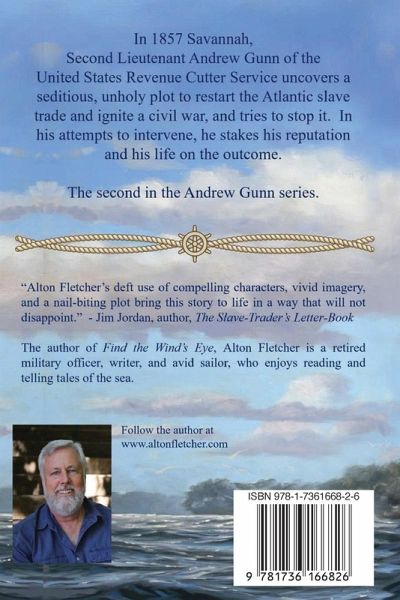In 1857 Savannah, Second Lieutenant Andrew Gunn of the U.S. Revenue Cutter Dobbin uncovers a seditious, unholy plot to restart the Atlantic slave trade, which threatens to ignite a Civil War. In his attempts to intervene, he stakes his reputation and his life on the outcome.