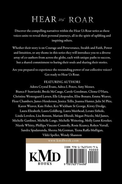 Stories of Stealth and Faith in the Lioness edition of Hear Us Roar Book & Docufilm. Discover the compelling narratives within the Hear Us Roar series as these voices unite to reveal their personal journeys, all in the spirit of uplifting and inspiring others. Whether their story is on Courage and Perseverance, Stealth and Faith, Power and Intuition, or any theme in this series they will introduce you to a diverse array of co-authors from across the globe, each with unique paths to success, but a shared commitment to baring their souls and sharing their stories. Are you prepared to experience the resounding power of our collective voices? Get ready to Hear Us Roar.