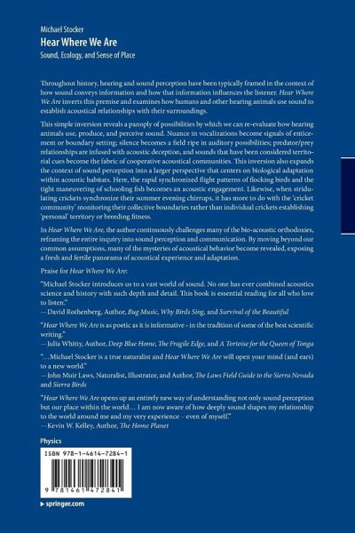 In "Hear Where We Are" the author continuously challenges many of the bio-acoustic orthodoxies, reframing the entire inquiry into sound perception and communication. By moving beyond our common assumptions, many of the mysteries of acoustical behavior become revealed, exposing a fresh and fertile panorama of acoustical experience and adaptation.