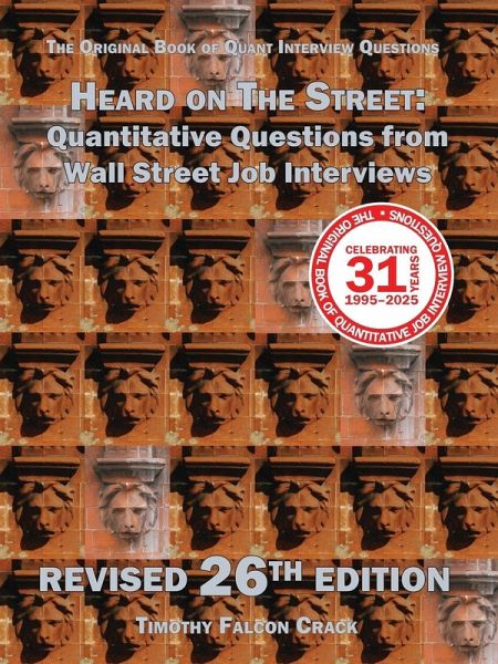 [Warning: Do not buy an old edition of Timothy Crack's books by mistake. Click on the Amazon author page link for a list of the latest editions .] THIS IS A MUST READ! It is the first and the original book of quantitative questions from finance job interviews. Painstakingly revised over 31 years and 26 editions, Heard on The Street has been shaped by feedback from hundreds of readers. With well over 75,000 copies in print, its readership is unmatched by any competing book. The revised 26th edition contains 246 quantitative questions collected from actual job interviews in investment banking, investment management, and options trading. The interviewers use the same questions year-after-year, and here they are with detailed solutions! This edition also includes 278 non-quantitative actual interview questions, giving a total of more than 500 actual finance job interview questions. Questions that appeared in (or are likely to appear in) traditional corporate finance or investment banking job interviews are indicated with a bank symbol in the margin (72 of the 246 quant questions and 196 of the 278 non-quant questions). This makes it easier for corporate finance candidates to go directly to the questions most relevant to them. Most of these questions also appeared in capital markets interviews and quant interviews. So, they should not be skipped over by capital markets or quant candidates unless they are obviously irrelevant. There is also a recently revised section on interview technique based on feedback from interviewers worldwide. The quant questions cover pure quant/logic, financial economics, derivatives, and statistics. They come from all types of interviews (corporate finance, sales and trading, quant research, etc.), and from all levels of interviews (undergraduate, MS, MBA, PhD). The first seven editions of Heard on the Street contained an appendix on option pricing. That appendix was carved out as a standalone book many years ago and it is now available in a recently revised edition: "Basic Black-Scholes." Dr. Crack did PhD coursework at MIT and Harvard, and graduated with a PhD from MIT. He has won many teaching awards, and has publications in the top academic, practitioner, and teaching journals in finance. He has degrees/diplomas in Mathematics/Statistics, Finance, Financial Economics and Accounting/Finance. Dr. Crack taught at the university level for over 25 years including four years as a front line teaching assistant for MBA students at MIT, and four years teaching undergraduates, MBAs, and PhDs at Indiana University. He has worked as an independent consultant to the New York Stock Exchange and to a foreign government body investigating wrong doing in the financial markets. He previously held a practitioner job as the head of a quantitative active equity research team at what was the world's largest institutional money manager.