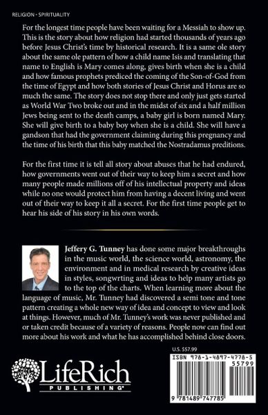 For the longest time people have been waiting for a Messiah to show up. This is the story about how religion had started thousands of years ago before Jesus Christ's time by historical research. It is a same ole story about the same ole pattern of how a child name Isis and translating that name to English is Mary comes along, gives birth when she is a child and how famous prophets prediced the coming of the Son-of-God from the time of Egypt and how both stories of Jesus Christ and Horus are so much the same. The story does not stop there and only just gets started as World War Two broke out and in the midst of six and a half million Jews being sent to the death camps, a baby girl is born named Mary. She will give birth to a baby boy when she is a child. She will have a gandson that had the government claiming during this pregnancy and the time of his birth that this baby matched the Nostradamus preditions. For the first time it is tell all story about abuses that he had endured, how governments went out of their way to keep him a secret and how many people made millions off of his intellectual property and ideas while no one would protect him from having a decent living and went out of their way to keep it all a secret. For the first time people get to hear his side of his story in his own words.