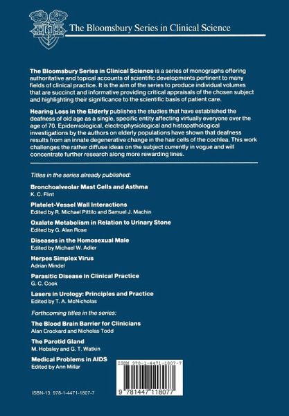 In their preface, the authors highlight the great social and medical importance of hearing loss in the elderly, an ever-increasing prob lem. It is, therefore, most appropriate that a monograph, devoted to research in this field, features as an addition to the Bloomsbury Series in Clinical Science. Written by two leading authorities, the book reviews the past and present literature, details the clinical aspects and considers the electrophysiological and histopatho logical issues basic to the overall problem. It continues the high standard and excellence fostered by previous issues in the Series. London, August 1990 Jack Tinker Preface The number of very old people in the community is steadily increasing so the hearing loss that many of them endure has become a disorder of social and medical importance. Only by a greater scientific knowledge of old age deafness can there be any possibility for improvement in the care offered to its sufferers.