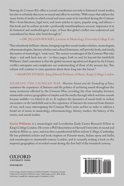 Hearing the Crimean War: Wartime Sound and the Unmaking of Sense examines the experience of listeners and the politics of archiving sound throughout the many territories affected by the Crimean War, revealing the close interplay between nineteenth-century geographies of empire and the media through which wartime sounds became audible-or failed to do so.