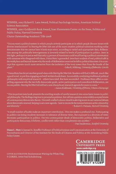 Religion and politics, as the old saying goes, should never be discussed in mixed company. And yet fostering discussions that cross lines of political difference has long been a central concern of political theorists. But only recently have scholars begun empirical investigations of where and with what consequences people interact with those whose political views differ from their own. Hearing the Other Side examines the consequences - both positive and negative - of living in mixed political company.