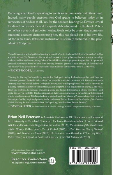 Knowing when God is speaking to you is sometimes easier said than done. Indeed, many people question how God speaks to believers today or, in some cases, if he does at all. Yet, for the believer, hearing God's voice is vital for direction in one's life and for spiritual development. In this book, Peterson offers a practical guide for hearing God's voice by presenting numerous anecdotal accounts demonstrating how this has played out in his own life. At the same time, Peterson's instruction is securely anchored in the precedent of Scripture.