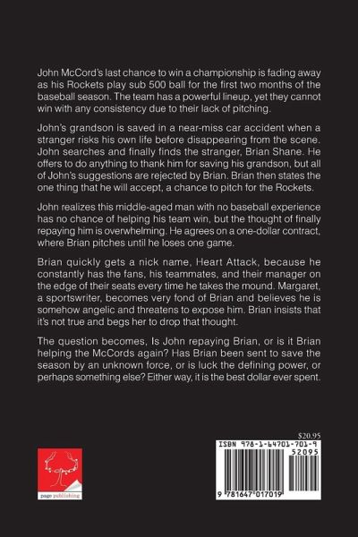 John McCord's last chance to win a championship is fading away as his Rockets play sub 500 ball for the first two months of the baseball season. The team has a powerful lineup, yet they cannot win with any consistency due to their lack of pitching. John's grandson is saved in a near-miss car accident when a stranger risks his own life before disappearing from the scene. John searches and finally finds the stranger, Brian Shane. He offers to do anything to thank him for saving his grandson, but all of John's suggestions are rejected by Brian. Brian then states the one thing that he will accept, a chance to pitch for the Rockets. John realizes this middle-aged man with no baseball experience has no chance of helping his team win, but the thought of finally repaying him is overwhelming. He agrees on a one-dollar contract, where Brian pitches until he loses one game. Brian quickly gets a nick name, Heart Attack, because he constantly has the fans, his teammates, and their manager on the edge of their seats every time he takes the mound. Margaret, a sportswriter, becomes very fond of Brian and believes he is somehow angelic and threatens to expose him. Brian insists that it's not true and begs her to drop that thought. The question becomes, Is John repaying Brian, or is it Brian helping the McCords again? Has Brian been sent to save the season by an unknown force, or is luck the defining power, or perhaps something else? Either way, it is the best dollar ever spent.