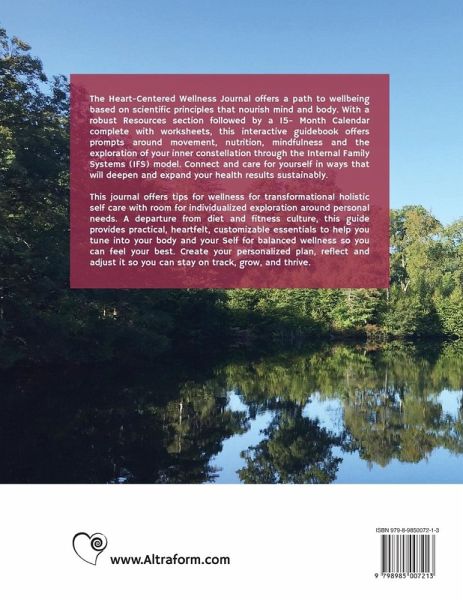 The Heart-Centered Wellness Journal offers self-help guidance infused with mind-body principles that can be experienced both independently or as a companion to coaching or therapy. The first section contains resources inspired by the Internal Family Systems (IFS) model, mindfulness, movement, and nourishment through whole foods. The second section offers a vibrant nature-themed 15-month calendar with journaling activities to facilitate and track your transformation. This person-centered exploration stirs curiosity and creativity around self-care programming that speaks to your inner constellation. Nourish your entire self genuinely and lovingly through building self-leadership and sustainable self-care practices so you can thrive. This version of the Heart-Centered Wellness Journal is Undated so that you can customize your own starting period. It is a soft cover 8.5 x 11 full color book. 193 pages.