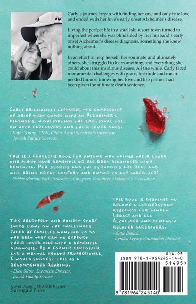 Carly's journey began with finding her one and only true love and ended with her love's early onset Alzheimer's disease. Living the perfect life in a small ski resort town turned to imperfect when she was blindsided by her husband's early onset Alzheimer's disease diagnosis, something she knew nothing about. In an effort to help herself, her soulmate and ultimately others, she struggled to learn anything and everything she could about this insidious disease. All the while facing monumental challenges with grace, fortitude and much needed humor, knowing her love and life partner had been given the ultimate death sentence. Her healthy and incredibly intelligent husband was living proof that Alzheimer's disease doesn't discriminate. It can happen to anyone at any time. However through it all, she remained steadfast and persistent as her undying love never faded. Carly desperately tried to grapple with eventually losing her husband without losing herself in the arms of grief and sorrow.