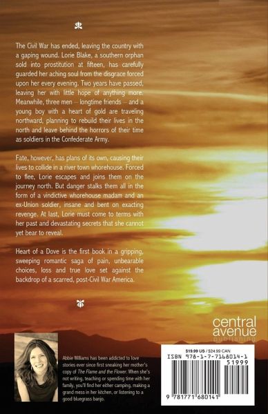 Heart of a Dove is the first book in a gripping, sweeping romantic saga of pain, unbearable choices, loss and true love set against the backdrop of a scarred, post-Civil War America. Independent Publishers Awards - Gold Medal The Civil War has ended, leaving the country with a gaping wound. Lorie Blake, a southern orphan sold into prostitution at fifteen, has carefully guarded her aching soul from the disgrace forced upon her every evening. Two years have passed, leaving her with little hope of anything more. Meanwhile, three men – longtime friends – and a young boy with a heart of gold are traveling northward, planning to rebuild their lives in the north and leave behind the horrors of their time as soldiers in the Confederate Army. Fate, however, has plans of its own, causing their lives to collide in a river town whorehouse. Forced to flee, Lorie escapes and joins them on the journey north. But danger stalks them all in the form of a vindictive whorehouse madam and an ex-Union soldier, insane and bent on exacting revenge. At last, Lorie must come to terms with her past and devastating secrets that she cannot yet bear to reveal. The Dove Saga 1. Heart of a Dove 2. Soul of a Crow 3. Grace of a Hawk Also from Abbie Williams, A Shore Leave Cafe Romance series: 1. Summer at the Shore Leave Cafe 2. Second Chances 3. A Notion of Love 4. Winter at the White Oaks Lodge 5. Wild Flower 6. The First Law of Love 7. Until Tomorrow 8. The Way Back 9. Return to Yesterday The story continues in A Place to Belong.