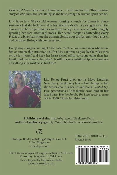 Heart Of a Stone is the story of survivors … in life and in love. This inspiring story of love, loss, and rebuilding shows how strong the human spirit can be. Lily Stone is a 28-year-old woman running a ranch for domestic abuse survivors that she took over after her mother's death. Lily struggles with the enormity of her responsibilities and lives to help other women, while largely ignoring her own emotional needs. Her secret escape is bartending every Friday at a biker bar where she can mindlessly pour drinks, enjoy loud music, and do some flirting with her customers. Everything changes one night when she meets a handsome man whom she has an undeniable attraction to. Can Lily continue to play by the rules she's set up for herself, and keep her heart closed off to everyone other than her family and the women she helps? Or will this new relationship make her lose everything she's worked so hard for? Lisa Renee Faust grew up in Mays Landing, New Jersey, on the very lake - Lake Lenape - that she writes about in her second book Twisted Ivy. Five generations of her family have lived in her lake house. Her first book, The Road to Love, came out in 2009. This is her third book. Publisher's website: http://sbpra.com/LisaReneeFaust http://www.facebook.com/WordsAndLife