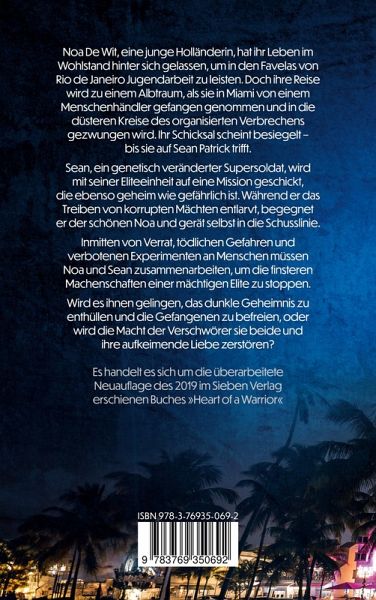 Noa De Wit, eine junge Holländerin, hat ihr Leben im Wohlstand hinter sich gelassen, um in den Favelas von Rio de Janeiro Jugendarbeit zu leisten. Doch ihre Reise wird zu einem Albtraum, als sie in Miami von einem Menschenhändler gefangen genommen und in die düsteren Kreise des organisierten Verbrechens gezwungen wird. Ihr Schicksal scheint besiegelt - bis sie auf Sean Patrick trifft. Sean, ein genetisch veränderter Supersoldat, wird mit seiner Eliteeinheit auf eine Mission geschickt, die ebenso geheim wie gefährlich ist. Während er das Treiben von korrupten Mächten entlarvt, begegnet er der schönen Noa und gerät selbst in die Schusslinie. Inmitten von Verrat, tödlichen Gefahren und verbotenen Experimenten an Menschen müssen Noa und Sean zusammenarbeiten, um die finsteren Machenschaften einer mächtigen Elite zu stoppen. Wird es ihnen gelingen, das dunkle Geheimnis zu enthüllen und die Gefangenen zu befreien, oder wird die Macht der Verschwörer sie beide und ihre aufkeimende Liebe zerstören? (Es handelt es sich um die überarbeitete Neuauflage des 2019 im Sieben Verlag erschienenen Buches «Heart of a Warrior»)