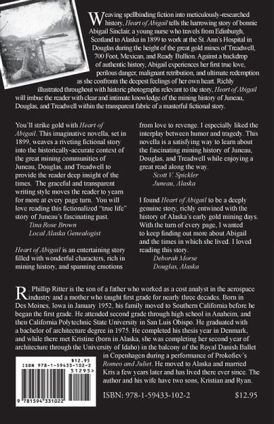 Weaving spellbinding fiction into meticulously researched history, Heart of Abigail tells the harrowing story of bonnie Abigail Sinclair, a young nurse who travels from Edinburgh, Scotland to Alaska in 1899 to work at the St. Ann's Hospital in Douglas during the height of the great gold mines of Treadwell, 700 Foot, Mexican, and Ready Bullion. Against a backdrop of authentic history, Abigail experiences her first true love, perilous danger, malignant retribution, and ultimate redemption as she confronts the deepest feelings of her own heart. Richly illustrated throughout with historic photographs relevant to the story, Heart of Abigail will imbue the reader with clear and intimate knowledge of the mining history of Juneau, Douglas, and Treadwell within the transparent fabric of a masterful fictional story.