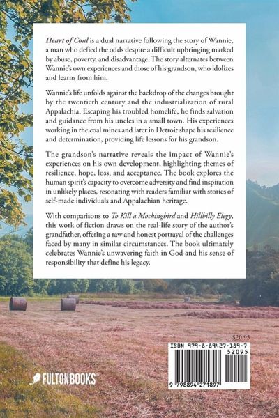 Heart of Coal is a dual narrative following the story of Wannie, a man who defied the odds despite a difficult upbringing marked by abuse, poverty, and disadvantage. The story alternates between Wannie's own experiences and those of his grandson, who idolizes and learns from him. Wannie's life unfolds against the backdrop of the changes brought by the twentieth century and the industrialization of rural Appalachia. Escaping his troubled homelife, he finds salvation and guidance from his uncles in a small town. His experiences working in the coal mines and later in Detroit shape his resilience and determination, providing life lessons for his grandson. The grandson's narrative reveals the impact of Wannie's experiences on his own development, highlighting themes of resilience, hope, loss, and acceptance. The book explores the human spirit's capacity to overcome adversity and find inspiration in unlikely places, resonating with readers familiar with stories of self-made individuals and Appalachian heritage. With comparisons to To Kill a Mockingbird and Hillbilly Elegy, this work of fiction draws on the real-life story of the author's grandfather, offering a raw and honest portrayal of the challenges faced by many in similar circumstances. The book ultimately celebrates Wannie's unwavering faith in God and his sense of responsibility that define his legacy.