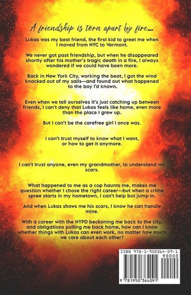 A friendship scorched in a fiery blaze... Lukas was the first kid to greet me when I moved from NYC to Vermont and quickly became my best friend. To my great regret, he disappeared shortly after the tragic death of his mother. Over the years, I thought of him. Wondering where he was and what could have been had we not been ripped apart. Turns out, fate wasn't finished with us yet. Reunited with Lukas, I'm left gasping at the delectable man he's become. We tell ourselves we're just two old friends catching up, but the chemistry between us is undeniable. I'm not the carefree girl I once was. As a police officer, I've experienced things that haunt me. Yet when Lukas shows me his scars, I begin to think he can handle mine. With a career with the NYPD beckoning me back to the city, can Lukas and I find a way to be together? Or will we once again be torn apart, despite our feelings for each other?