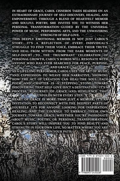 Heart of Grace is a deeply personal and poetic memoir by Carol Cisneros, who invites readers to experience the transformative power of self-love, healing, and grace. Through poignant verses and heartfelt reflections, Carol takes us on a journey of emotional discovery, offering solace and wisdom to those seeking growth and empowerment. In this powerful collection, Carol explores her journey through music and the performing arts, sharing how these passions helped her overcome obstacles and reconnect with her true self. Each poem serves as a reflection and an invitation to embrace the heart's healing capacity, encouraging readers to embrace their path of self-love and transformation. For those struggling with feelings of isolation or doubt, Heart of Grace offers a reminder that we are always capable of growth through love and grace. This book will resonate with anyone seeking a deeper connection to themselves, the power of healing, and the beauty of self-compassion. Join Carol on this emotional and uplifting journey of rediscovery, empowerment, and the everlasting grace that resides within us all.