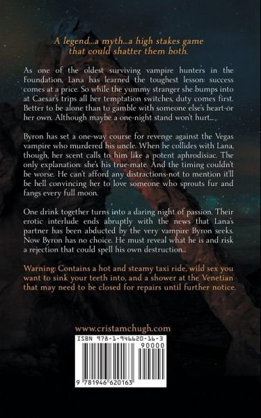 A legend…a myth…a high stakes game that could shatter them both. As one of the oldest surviving vampire hunters in the Foundation, Lana has learned the toughest lesson: success comes at a price. So while the yummy stranger she bumps into at Caesar's trips all her temptation switches, duty comes first. Better to be alone than to gamble with someone else's heart-or her own. Although maybe a one-night stand won't hurt… Byron has set a one-way course for revenge against the Vegas vampire who murdered his uncle. When he collides with Lana, though, her scent calls to him like a potent aphrodisiac. The only explanation: she's his true-mate. And the timing couldn't be worse. He can't afford any distractions-not to mention it'll be hell convincing her to love someone who sprouts fur and fangs every full moon. One drink together turns into a daring night of passion. Their erotic interlude ends abruptly with the news that Lana's partner has been abducted by the very vampire Byron seeks. Now Byron has no choice. He must reveal what he is and risk a rejection that could spell his own destruction… Warning: Contains a hot and steamy taxi ride, wild sex you want to sink your teeth into, and a shower at the Venetian that may need to be closed for repairs until further notice.
