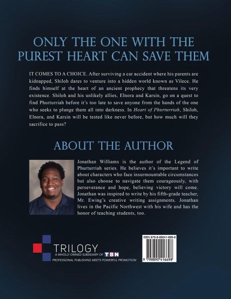 ONLY THE ONE WITH THE PUREST HEART CAN SAVE THEM IT COMES TO A CHOICE. After surviving a car accident where his parents are kidnapped. Shiloh dares to venture into a hidden world known as Vilece. He finds himself at the heart of an ancient prophecy that threatens its very existence. Shiloh and his unlikely allies, Elnora and Karsin, go on a quest to find Phurturriah before it's too late to save anyone from the hands of the one who seeks to plunge them all into darkness. In Heart of Phurturriah, Shiloh, Elnora, and Karsin will be tested like never before, but how much will they sacrifice to pass?