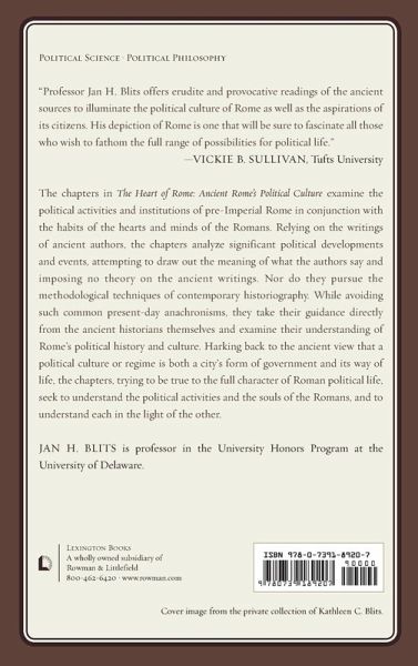 Jan H. Blits’ The Heart of Rome: Ancient Rome’s Political Culture examines the political activities and institutions of pre-Imperial Rome in conjunction with the habits of the hearts and the minds of the Romans. Blits emphasizes treating the writings of ancient historians of Rome as works of thoughtful reflection rather than as works of technical research.