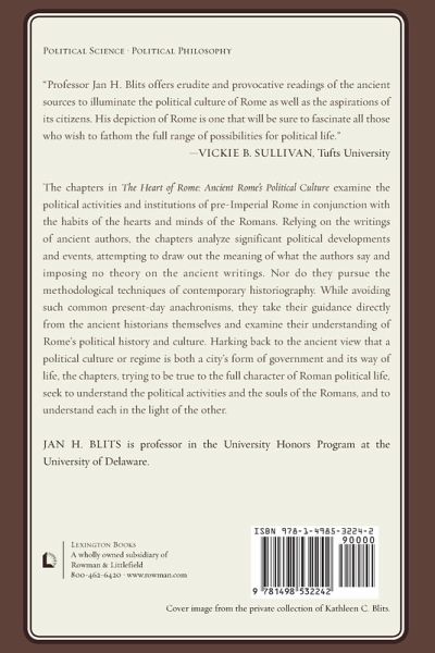 Jan H. Blits' The Heart of Rome: Ancient Rome's Political Culture examines the political activities and institutions of pre-Imperial Rome in conjunction with the habits of the hearts and the minds of the Romans. Blits emphasizes treating the writings of ancient historians of Rome as works of thoughtful reflection rather than as works of technical research.