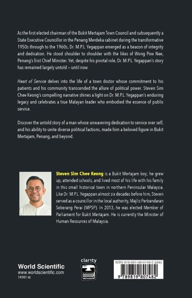 As the first elected chairman of the Bukit Mertajam Town Council and subsequently a State Executive Councillor in the Penang Merdeka cabinet during the transformative 1950s through to the 1960s, Dr M P L Yegappan emerged as a beacon of integrity and dedication. He stood shoulder to shoulder with the likes of Wong Pow Nee, Penang's first Chief Minister. Yet, despite his pivotal role, Dr M P L Yegappan's story has remained largely untold - until now. Heart of Service delves into the life of a town doctor whose commitment to his patients and his community transcended the allure of political power. Steven Sim Chee Keong's compelling narrative shines a light on Dr M P L Yegappan's enduring legacy and celebrates a true Malayan leader who embodied the essence of public service. Discover the untold story of a man whose unwavering dedication to service over self, and his ability to unite diverse political factions, made him a beloved figure in Bukit Mertajam, Penang, and beyond.