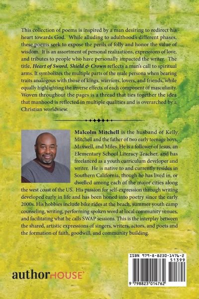 This collection of poems is inspired by a man desiring to redirect his heart towards God. While alluding to adulthood's different phases, these poems seek to expose the perils of folly and honor the value of wisdom. It is an assortment of personal realizations, expressions of love, and tributes to people who have personally impacted the writer. The title, Heart of Sword, Shield & Crown reflects a man's call to spiritual arms. It symbolizes the multiple parts of the male persona when bearing traits analogous with those of kings, warriors, lovers, and friends, while equally highlighting the inverse effects of each component of masculinity. Woven throughout the pages is a thread that ties together the idea that manhood is reflected in multiple qualities and is overarched by a Christian worldview.