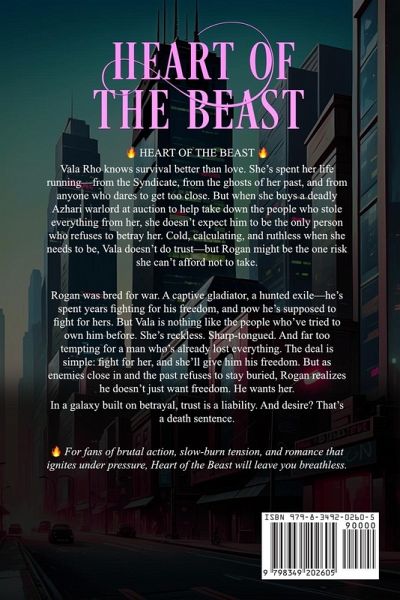 ¿¿¿¿ He was supposed to be a monster. Instead, he became the only one she could trust. ¿¿¿¿ She killed the man who owned her. But the past won't let her go. Vala Rho is a survivor. She's bled, fought, and clawed her way out of the Syndicate's grip. But when a dying man delivers a message that changes everything-her family might still be alive-Vala is forced to make an impossible choice: bury the past or risk everything to uncover the truth. The only one standing between her and certain death? Rogan. A ruthless Azhari warlord with blood on his hands and a hunger in his eyes. He's lethal. Unpredictable. And the only person who's never lied to her. Their alliance is fragile. Their chemistry is explosive. And in the farthest reaches of space, where betrayal is currency and love is a weakness, Vala and Rogan will have to decide: run, fight, or burn together. ¿¿¿¿ Perfect for fans of brutal action, slow-burn tension, and dangerous romance set against the backdrop of an unforgiving galaxy. She's hunted. He's feared. Together, they'll ignite a war the Syndicate won't survive. Vala Rho didn't set out to become the most wanted bounty in the galaxy-she just wanted to disappear. After her crew was slaughtered in a Syndicate raid, Vala went underground, hiding behind forged identities and stolen ships, one step ahead of the hunters on her trail. But the Syndicate doesn't forgive, and they don't forget. Especially when you steal from them. Rogan, an exiled Azhari warlord, knows better than to get tangled up with a human fugitive. But from the moment Vala crashes into his life-bloodied, defiant, and entirely too tempting-he can't stay away. She's chaos wrapped in curves, a walking target with secrets that could burn them both. When the Syndicate puts a bounty on both their heads, Vala and Rogan have no choice but to fight back. As betrayal, desire, and old vendettas collide, survival means trusting each other-and the heat simmering between them might be more dangerous than the enemies hunting them across the stars. Because in a galaxy ruled by crime lords and killers, falling in love is the most dangerous risk of all. For fans of Dark Fantasy sci-fi romance with sizzling enemies-to-lovers heat, action-packed twists, and a heroine who refuses to surrender.