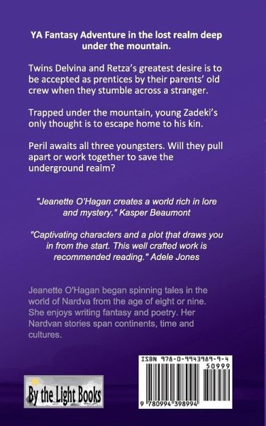 YA Fantasy Adventure in the lost realm deep under the mountain. Twins Delvina and Retza's greatest desire is to be accepted as prentices by their parents' old crew when they stumble across a stranger. Trapped under the mountain, young Zadeki's only thought is to escape home to his kin. Peril awaits all three youngsters. Will they pull apart or work together to save the underground realm? Book 1 in Under the Mountain series