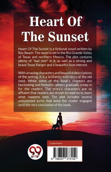 Heart Of The Sunset is a fictional novel written by Rex Beach. The novel is set in the Rio Grande Valley of Texas and northern Mexico. The plot contains plenty of "bad men" in it, as well as a strong and brave Texas Ranger and a beautiful love interest. With amazing characters and beautiful descriptions of the setting, it is a brilliantly told story of the old west. While some of the book's chapters are fascinating and fantastic, others gradually creep in for the readers. The story's characters are so affluent that readers are driven to read on to learn what happens next. The plot includes…mehr