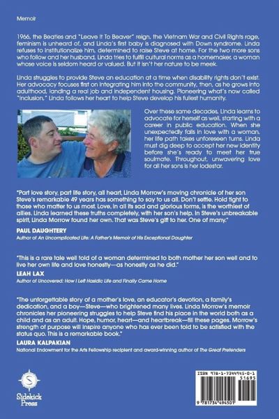 1966, the Beatles and "Leave It To Beaver" reign, the Vietnam War and Civil Rights rage, feminism is unheard of, and Linda’s first baby is diagnosed with Down syndrome. Linda refuses to institutionalize him, determined to raise Steve at home. For the two more sons who follow and her husband, Linda tries to fulfill cultural norms as a homemaker, a woman whose voice is seldom heard or valued. But it isn’t her nature to be meek. Linda struggles to provide Steve an education at a time when disability rights don’t exist. Her advocacy focuses first on integrating him into the community, then, as he grows into adulthood, landing a real job and independent housing. Pioneering what’s now called "inclusion," Linda follows her heart to help Steve develop his fullest humanity. Over these same decades, Linda learns to advocate for herself as well, starting with a career in public education. When she unexpectedly falls in love with a woman, her life path takes unforeseen turns. Linda must dig deep to accept her new identity before she’s ready to meet her true soulmate. Throughout, unwavering love for all her sons is her lodestar.