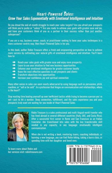 Do you dread the end-of-month struggle to reach your sales targets? Are you afraid your prospects will think you're pushy or "salesy"? Are you ready to achieve your goals with greater ease and joy, and have your customers think of you as a partner in their success rather than just another salesperson? If you are a rep, business owner, coach, or practitioner seeking to hone your sales techniques in a more customer-centric way, then Heart-Powered Sales is for you. In this book, author Robin Treasure offers a fresh and empowering perspective on how to achieve more success by cultivating your natural gifts of emotional intelligence and intuition. Heart-Powered Sales guides you to connect to the power of your heart as the antidote to fear, your source of confidence, and the cornerstone of emotional intelligence. Robin Treasure's unique process will help you shift your mindset and create the energy that will have your clients leaning in. The book will also help you implement practical tools and systems so that you will: - Reach your sales goals with greater ease and enjoy more prosperity - Learn to use your intuition to find new business opportunities - Enhance your emotional intelligence for greater customer loyalty - Know the most effective questions to ask prospects and clients - Transform objections into opportunities - Increase your confidence, joy and spiritual connection So many any other approaches in sales can seem adversarial by using language heavy with persuasion, pitching, targets, and "sell or be sold." In a profession that hinges on communication and relationships, where is the heart? Stop wasting time beating yourself up over inefficient tactics while trying to become a person you're not-just to hit a number. Deep connection, fulfillment, and the sales experience you and your prospects truly want are waiting for you inside of Heart-Powered Sales .