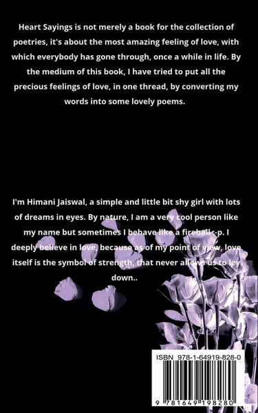 Heart Sayings is a book for the beautiful collection of soulful poerties based on love and life that are written by Himani Jaiswal. Not every Poem and Shayari, in fact, every single word in the book is written by pure heart which describes the purity of love, hope and the positivity of life. If you are a poetry lover and have gone through the beautiful phase of love and still living your life fullest, then this book is a must-read for you, as these poetries will mesmerize you again and give you the feel of your first love once again.