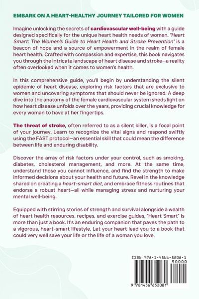 Embark on a Heart-Healthy Journey Tailored for Women Imagine unlocking the secrets of cardiovascular well-being with a guide designed specifically for the unique heart health needs of women. "Heart Smart: The Women's Guide to Heart Health and Stroke Prevention" is a beacon of hope and a source of empowerment in the realm of female heart health. Crafted with compassion and expertise, this book navigates you through the intricate landscape of heart disease and stroke-a reality often overlooked when it comes to women's health. In this comprehensive guide, you'll begin by understanding the silent epidemic of heart disease, exploring risk factors that are exclusive to women and uncovering symptoms that should never be ignored. A deep dive into the anatomy of the female cardiovascular system sheds light on how heart disease unfolds over the years, providing crucial knowledge for every woman to have at her fingertips. The threat of stroke, often referred to as a silent killer, is a focal point of your journey. Learn to recognize the vital signs and respond swiftly using the FAST protocol-an essential skill that could mean the difference between life and enduring disability. Discover the array of risk factors under your control, such as smoking, diabetes, cholesterol management, and more. At the same time, understand those you cannot influence, and find the strength to make informed decisions about your health and future. Revel in the knowledge shared on creating a heart-smart diet, and embrace fitness routines that endorse a robust heart-all while managing stress and nurturing your mental well-being. Equipped with stirring stories of strength and survival alongside a wealth of heart health resources, recipes, and exercise guides, "Heart Smart" is more than just a book. It's an enduring companion that paves the path to a vigorous, heart-smart lifestyle. Let your heart lead you to a book that could very well save your life or the life of a woman you love.