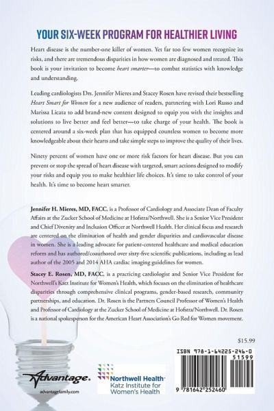 Your Six-Week Program for Healthier Living Heart disease is the number-one killer of women. Yet far too few women recognize its risks, and there are tremendous disparities in how women are diagnosed and treated. This book is your invitation to become heart smarter-to combat statistics with knowledge and understanding. Leading cardiologists Drs. Jennifer Mieres and Stacey Rosen have revised their bestselling Heart Smart for Women for a new audience of readers, partnering with Lori Russo and Marissa Licata to add brand-new content designed to equip you with the insights and solutions to live better and feel better-to take charge of your health. The book is centered around a six-week plan that has equipped countless women to become more knowledgeable about their hearts and take simple steps to improve the quality of their lives. Ninety percent of women have one or more risk factors for heart disease. But you can prevent or stop the spread of heart disease with targeted, smart actions designed to modify your risks and equip you to make healthier life choices. It's time to take control of your health. It's time to become heart smarter.