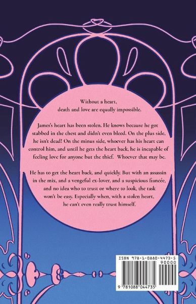 Without a heart, death and love are equally impossible. James's heart has been stolen. He knows because he got stabbed in the chest and didn't even bleed. On the plus side, he isn't dead! On the minus side, whoever has his heart can control him, and until he gets the heart back, he is incapable of feeling love for anyone but the thief. Whoever that may be. He has to get the heart back, and quickly. But with an assassin in the mix, and a vengeful ex-lover, and a suspicious fiancée, and no idea who to trust or where to look, the task won't be easy. Especially when, with a stolen heart, he can't even really trust himself.