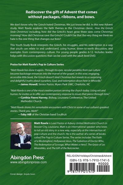 We don't know why the Grinch hated Christmas. We just know he did. If we're being honest, there's probably something within the Christmas season celebration that awakens a Grinch within all of us. Maybe the gift we unwrap was all wrong, or memories that were supposed to be joyful never were. When everything seems wrong in the world, even joyful celebrations are much too loud. In his new Advent study, Matt Rawle explores the faith themes in the Christmas classic, How the Grinch Stole Christmas including how did the Grinch's heart grow three sizes come Christmas morning? How did Christmas save the Grinch? Could it be that the very thing we think we hate, is the one thing that changes our life? Rediscover and reinvigorate your Christian faith this Advent and Christmas season and look at this familiar classic through the lens of faith. The Youth Study Book interprets the Grinch, his struggles, and his redemption in a way that youth can relate to and understand, using humor, down-to-earth discussion, and examples from contemporary culture. For young people grades 6-12. Includes leader helps with discussion questions that can be used with the adult-level DVD.