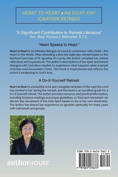 The title of this book, Heart to Heart, is from the eight-day retreat. On the eighth day of the retreat, Fr. Chris, the retreat director, gave me three scripture passages and the "Contemplation to Attain Love" to pray. The theme of the day was God's promise of hope. He said that these prayers were "heart to heart" and recommended I pray with my heart rather than with my thoughts. I didn't understand clearly what that meant, but it became clearer to me when I finished the three scripture prayers. It was a beautiful and perfecting experience, which transformed the troubling prayers in my mind into prayers that were heart to heart.