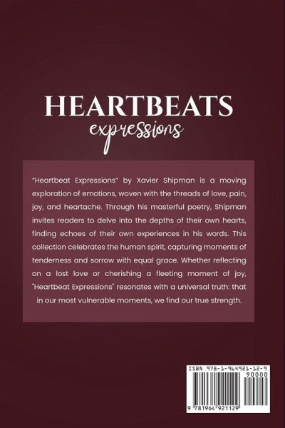 "Heartbeat Expressions" by Xavier Shipman is a moving exploration of emotions, woven with the threads of love, pain, joy, and heartache. Through his masterful poetry, Shipman invites readers to delve into the depths of their own hearts, finding echoes of their own experiences in his words. This collection celebrates the human spirit, capturing moments of tenderness and sorrow with equal grace. Whether reflecting on a lost love or cherishing a fleeting moment of joy, "Heartbeat Expressions" resonates with a universal truth: that in our most vulnerable moments, we find our true strength.