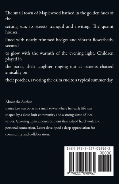 The small town of Maplewood bathed in the golden hues of the setting sun, its streets tranquil and inviting. The quaint houses, lined with neatly trimmed hedges and vibrant flowerbeds, seemed to glow with the warmth of the evening light. Children played in the parks, their laughter ringing out as parents chatted amicably on their porches, savoring the calm end to a typical summer day. The rhythmic hum of cicadas filled the air, blending with the soft rustle of leaves in a gentle breeze.
