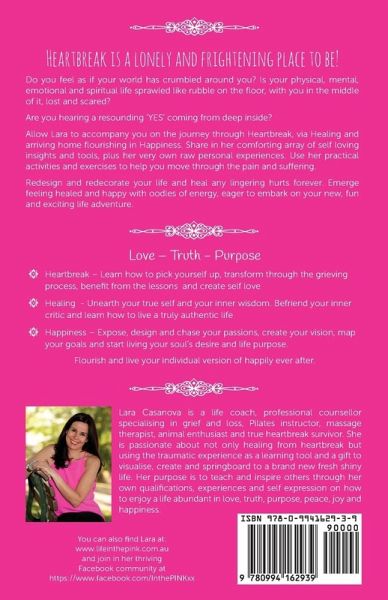 Heartbreak is a lonely and frightening place to be Do you feel as if your world has crumbled around you? Is your physical, mental, emotional and spiritual life sprawled like rubble on the floor, with you in the middle of it, lost and scared? Are you hearing a resounding YES coming from deep inside? Allow Lara to accompany you on the journey through Heartbreak, via Healing and arriving home flourishing in Happiness. Share in her comforting array of self loving insights and tools, plus her very own raw personal experiences. Use her practical activities and exercises to help move you through the pain and suffering. Redesign and redecorate your life and heal any old lingering hurts forever. Emerge feeling healed and happy with oodles of energy, eager to embark on your new, fun and exciting life adventure. Love – Truth - Purpose Heartbreak – Learn how to pick yourself up, transform through the grieving process, benefit from the lessons and create self love Healing - Unearth your true self and your inner wisdom. Befriend your inner critic and learn how to live a truly authentic life Happiness – Expose, design and chase your passions, create your vision, map your goals and start living your soul’s desire and life purpose. Flourish and live your individual version of happily ever after.